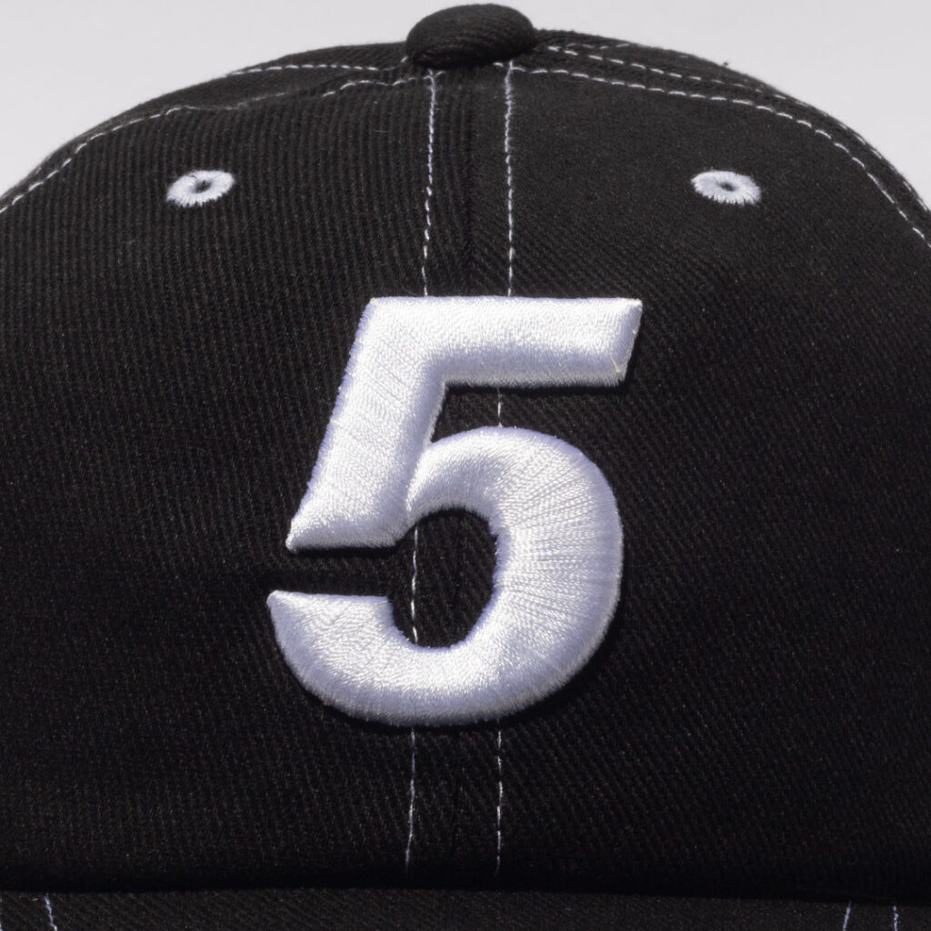 前面の”5″の部分が、3D刺繍になります。